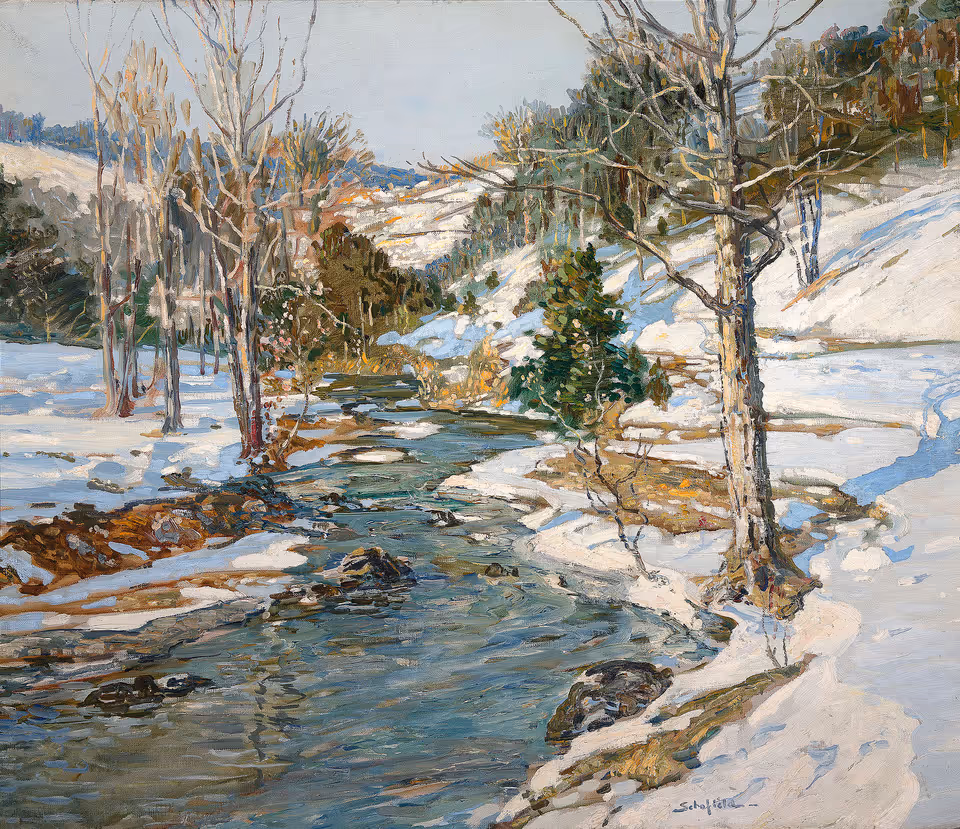 Among the great strengths of Woodmere’s collection is the work of Philadelphia’s Impressionists. This focus was largely initiated by Edith Emerson, director of the museum from the early 1940s through the 1970s. Friendly with artists like Walter Elmer Schofield, Edward Redfield, Daniel Garber, and George Sotter, Emerson organized some of their first public exhibitions at Woodmere.