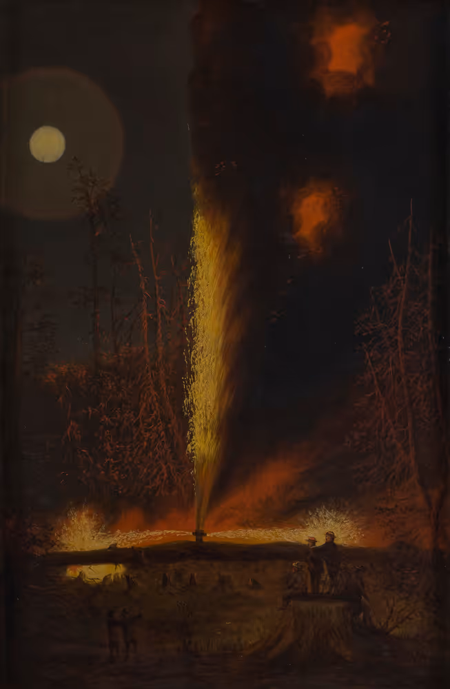Burning Oil Well at Night, near Rouseville, Pennsylvania