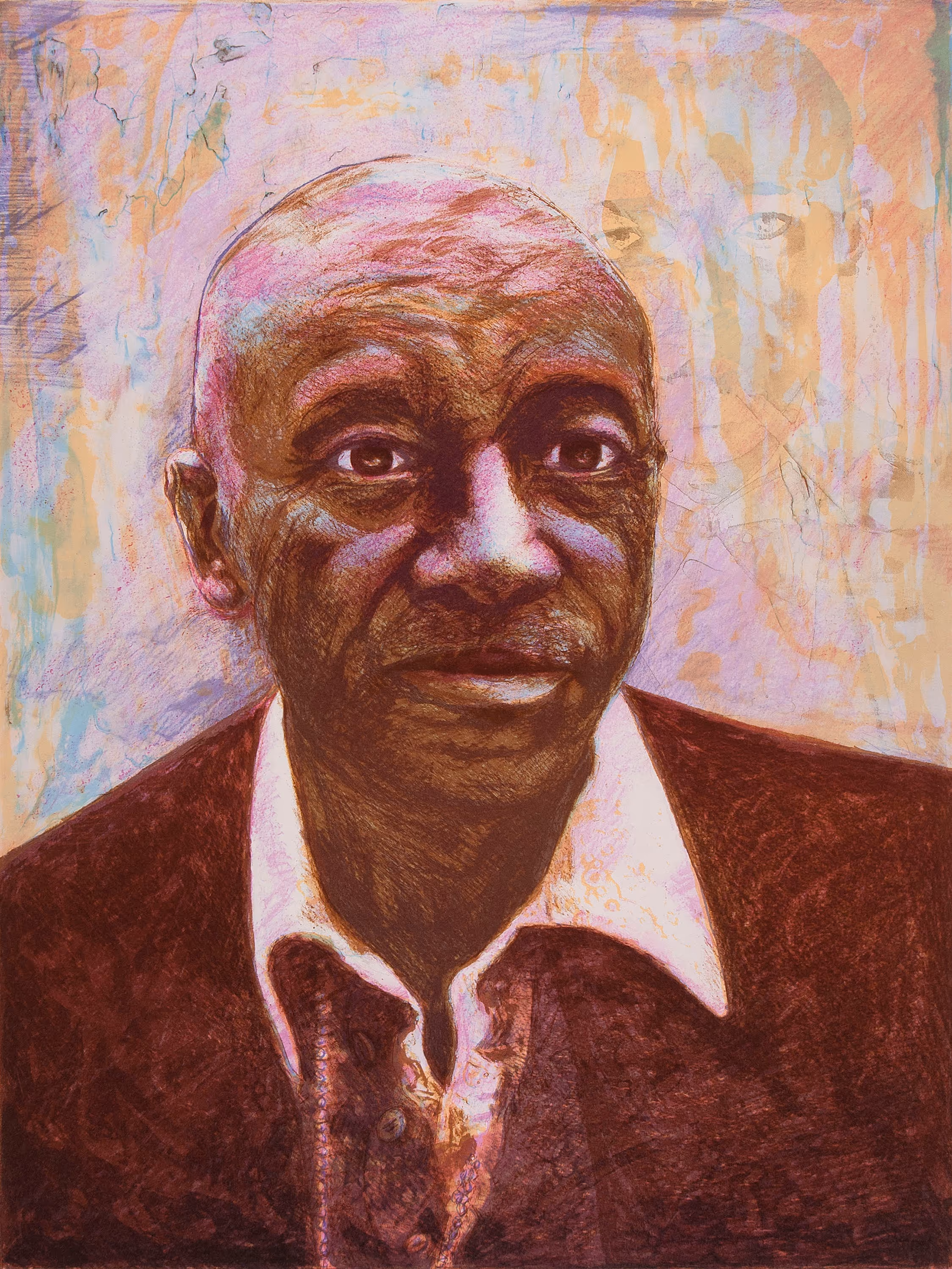 Brown looks thoughtfully past the viewer as if reflecting on the trajectory of life. He made this print at the Brandywine Workshop and Archives, where he served on the Board of Directors after retiring from Philadelphia’s public school system. Though Brown worked in many different mediums, he began his lifelong engagement with printmaking in the 1930s when he started working in the Works Progress Administration’s Federal Arts Project, a federally sponsored program that provided professional opportunities for artists. He was described repeatedly in the research for our 2015 exhibition, We Speak: Black Artists in Philadelphia, 1920-1970s, as a figure of inspiration and importance.