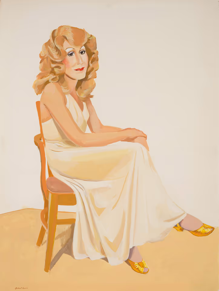 Gilbert painted this while we lived together. Sometimes [his] model would join us for dinner. This was one of the people I cooked for, and I watched him get ready for this portrait. I had no idea—I was very young and very naïve at the time. I was astounded by the transformation. In the 1970s, there was a serious drag scene in Philadelphia, made famous by the Vanguard Vanities. The Vanguard motorcycle club would do a drag musical every two years at the Mask and Wig Club. This guy was totally into it, and it was great fun to watch him transform himself over dinner before he posed for Gilbert.