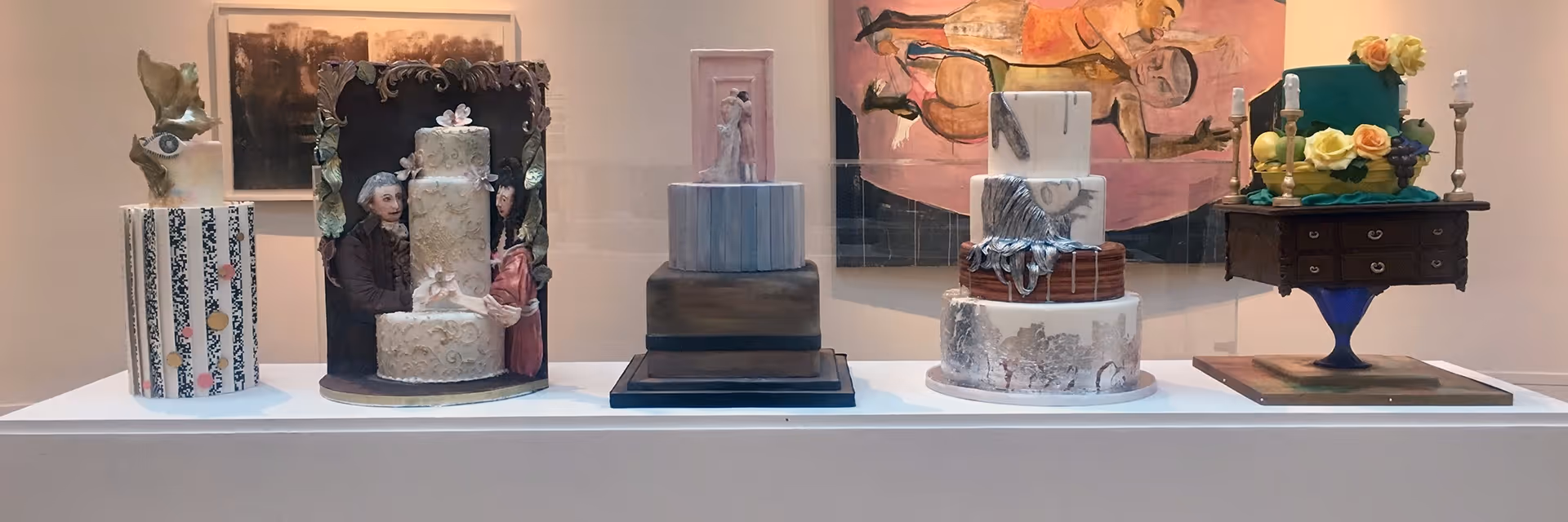 This special one-week exhibition of wedding cakes created by leading Philadelphia cake artists and bakeries was inspired by A More Perfect Union? Power, Sex, and Race in the Representation of Couples. Co-curated by Noelle DeSantis, owner of Ella Vanilla, a cake decorating supply shop in Chestnut Hill, the exhibition explored the concept of the wedding cake as a three-dimensional “edible artwork,” and its power to convey the personalities and interests of the wedding couple.